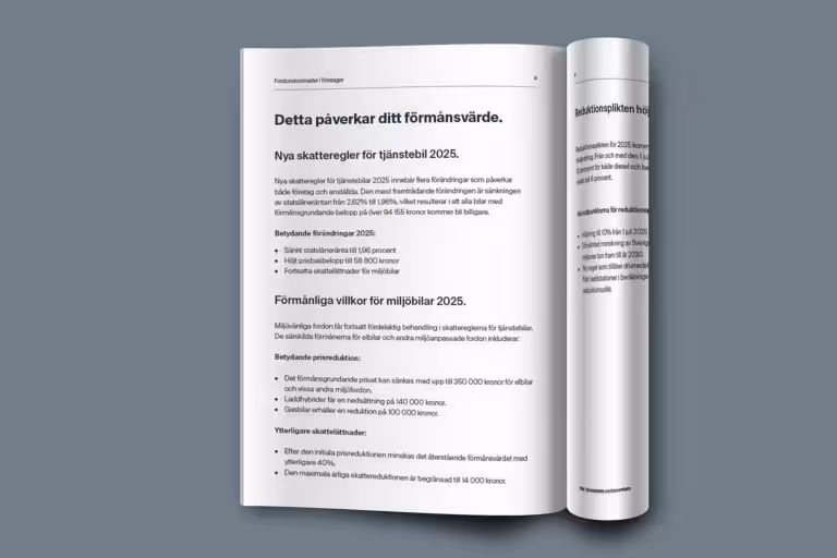 Från sänkt statslåneränta till fortsatta skattelättnader för el- och miljöbilar – 2025 bjuder på flera förändringar som gör det billigare att ha tjänstebil. Dessutom skärps reduktionsplikten, vilket påverkar drivmedelskostnaderna och klimatavtrycket.