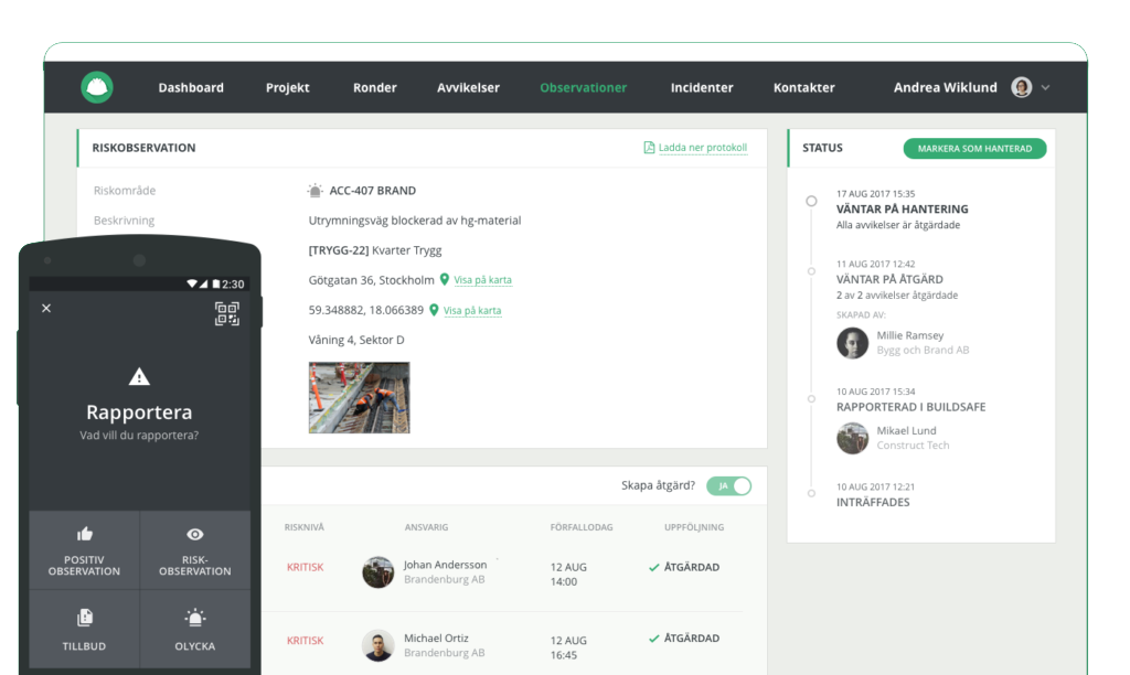 Vår senaste uppdatering av både webbplattformen och appen gör det enklare att arbeta med observationer, tillbud och olyckor.