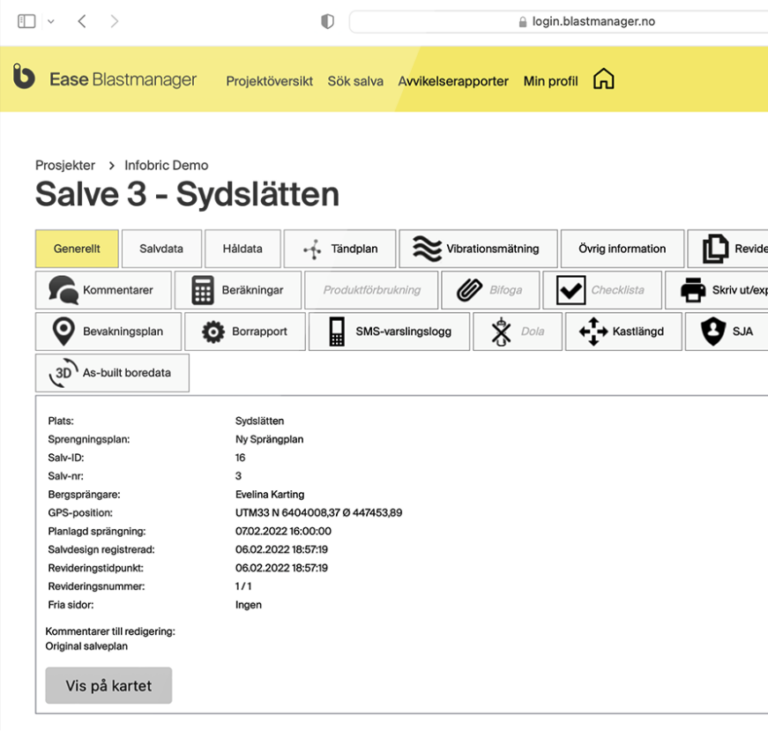 Infobric Blastmanager gör det både säkrare och enklare att spränga och sparar tid för alla parter. Du kommer åt den digitala tjänsten vi valfri uppkopplad enhet och får hjälp med allt från planering och riskanalys till beräkning av sprängämnen och dokumentation.