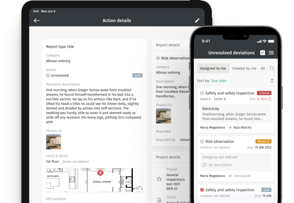 Get personalized to-do lists with open items and planned activities for everyone in the project organization. You’ll have a full overview of both open and closed items for site management, and automatic reminders are sent after the deadline to ensure tasks are completed on time.