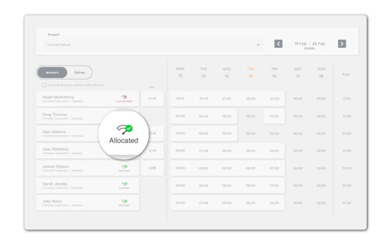 Timesheets is designed to support main contractors, subcontractors and labour agencies in increasing accuracy, transparency and control over worker timesheets.